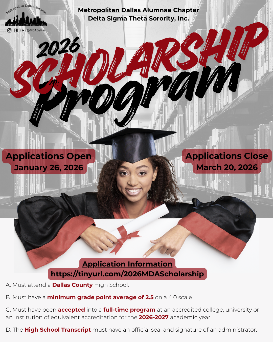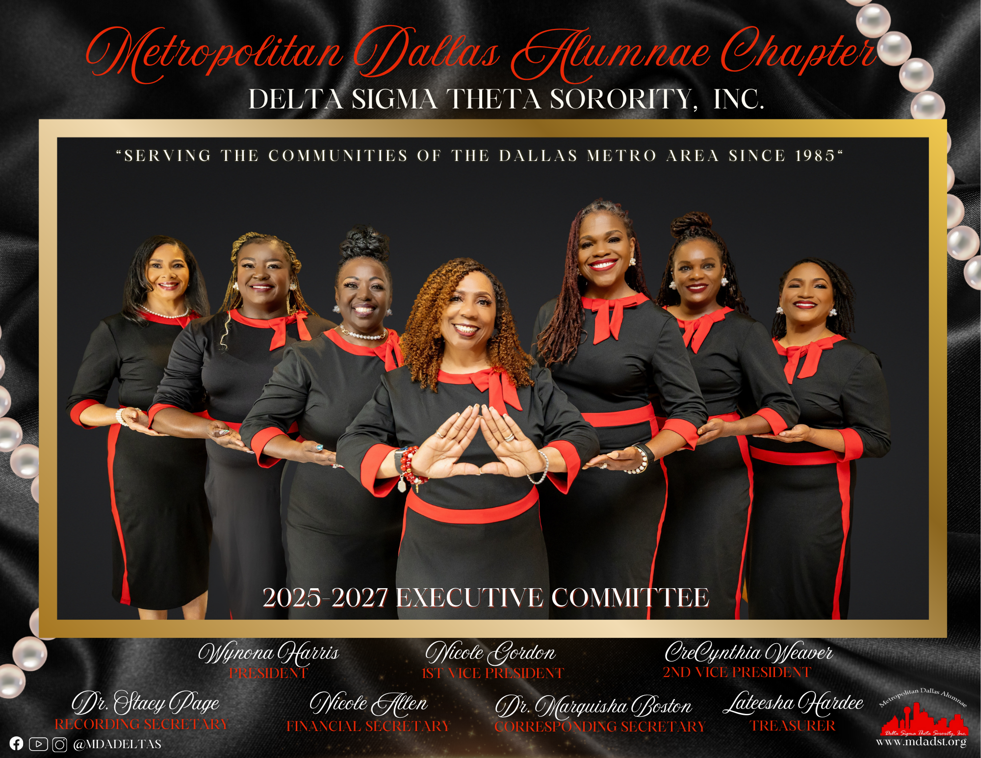 It is both an honor and a privilege to welcome you to the official website of the Metropolitan Dallas Alumnae Chapter (MDA) of Delta Sigma Theta Sorority, Incorporated. For over 40 years, our vibrant chapter—nearly 300 members strong—has served the Dallas–Fort Worth Metroplex with passion, purpose, and a steadfast commitment to public service. Our work is rooted in Delta Sigma Theta’s Five Point Programmatic Thrust.